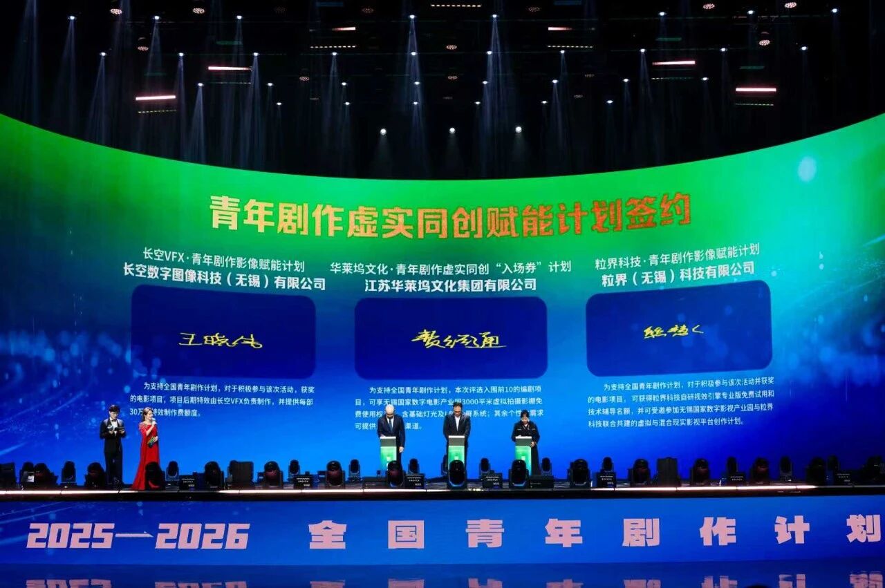 多家电影企业还将为获评优秀电影剧本的项目“保驾护航”,提供实实在在的支持。现场进行了“青年剧作虚实同创赋能计划签约”,江苏华莱坞文化集团推出了“入场券计划”,其中包括无锡国家数字电影产业园3000平方米虚拟拍摄影棚场地免费使用的权益,粒界科技自研的视效引擎专业版免费使用权,以及邀请获奖编剧及作品参加其与园区联合共建的虚拟与混合现实电影平台创作计划,长空一画视效公司将对后期成功转化的获奖电影剧本项目提供特效技术服务等。